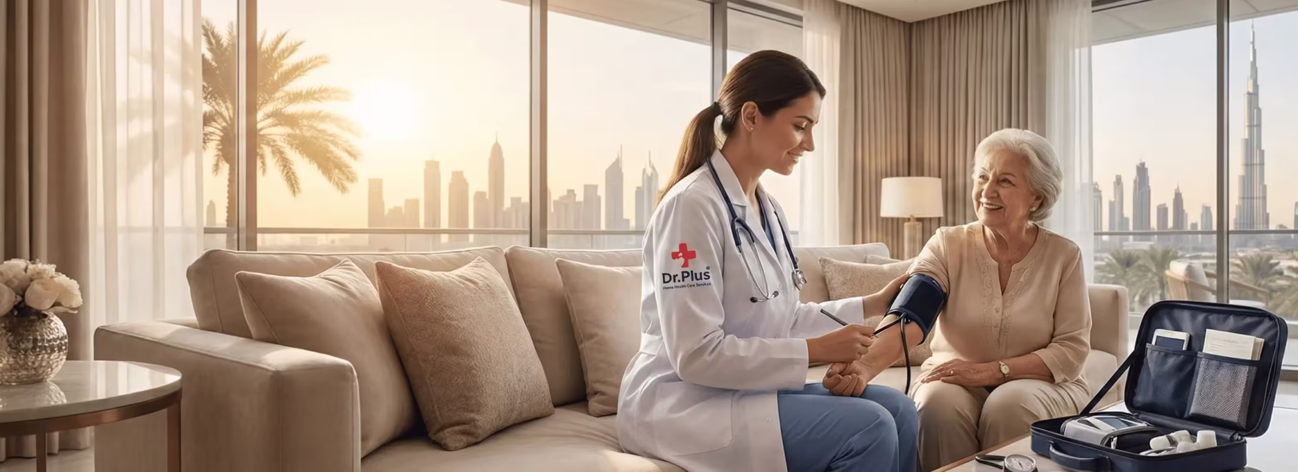 Dr. Plus offers trusted home healthcare services in Dubai and across the UAE, providing doctor at home consultations, nursing care, and medical support wherever you are. Skip long clinic queues and avoid unnecessary travel our certified doctors and licensed healthcare professionals come directly to your home.